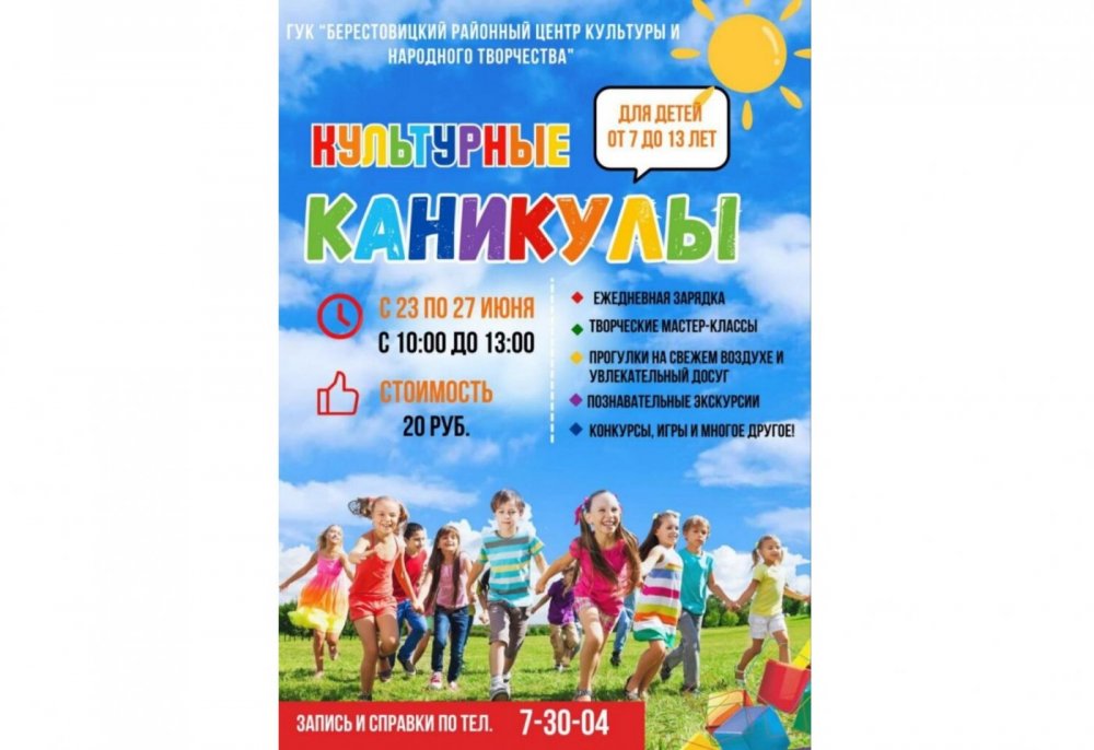 З 23 па 27 чэрвеня на Бераставічыне праходзіў праект “Культурныя канікулы”, ініцыяваны аддзелам ідэалагічнай работы і па справах моладзі сумесна з сектарам культуры Бераставіцкага райвыканкама пры ўдзеле раённага цэнтра культуры і народнай творчасці, райбібліятэкі, дзіцячай школы мастацтваў і Музея Вавёркі.