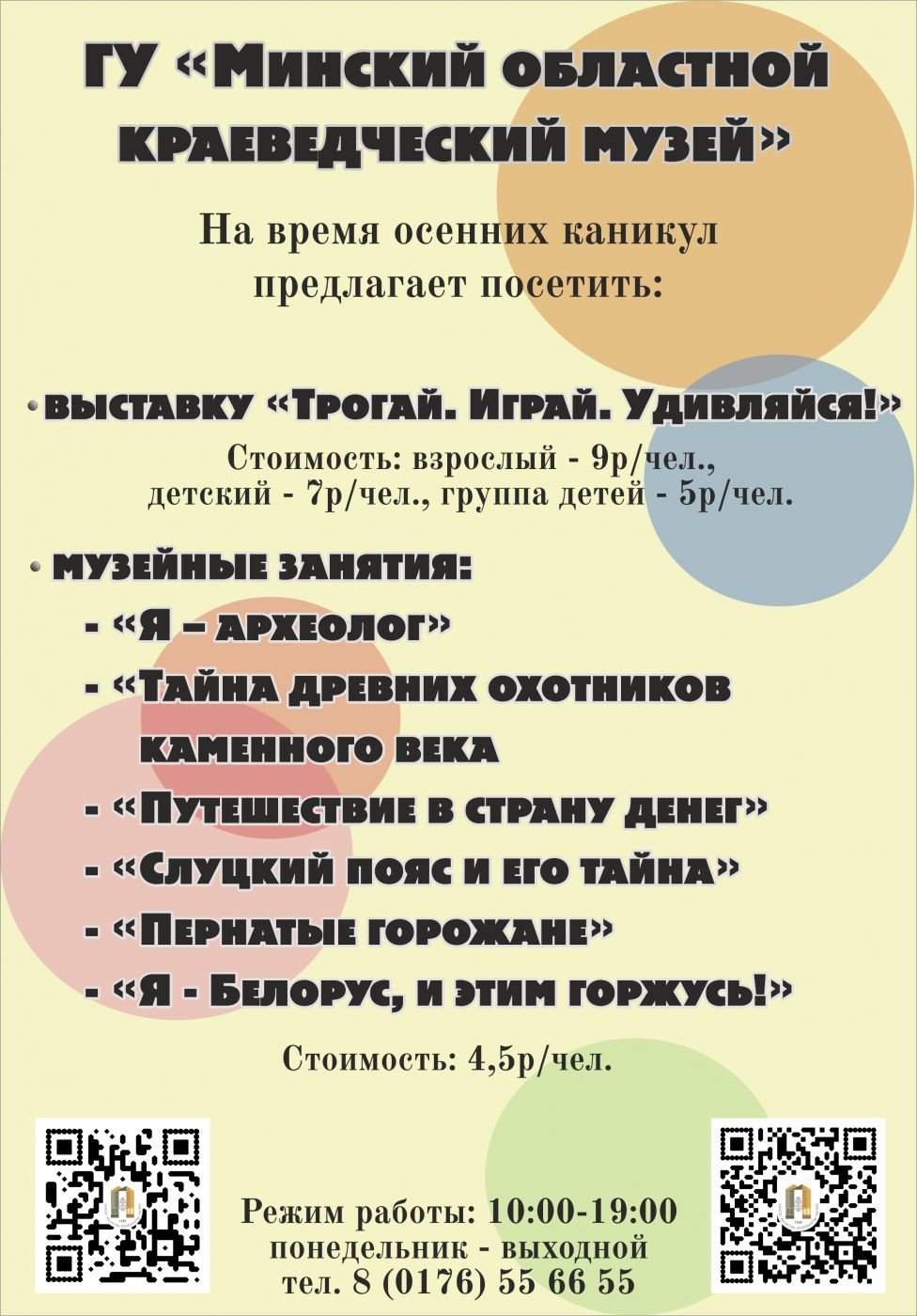 ГУ "Минский областной краеведческий музей" провести осенние каникулы с пользой!