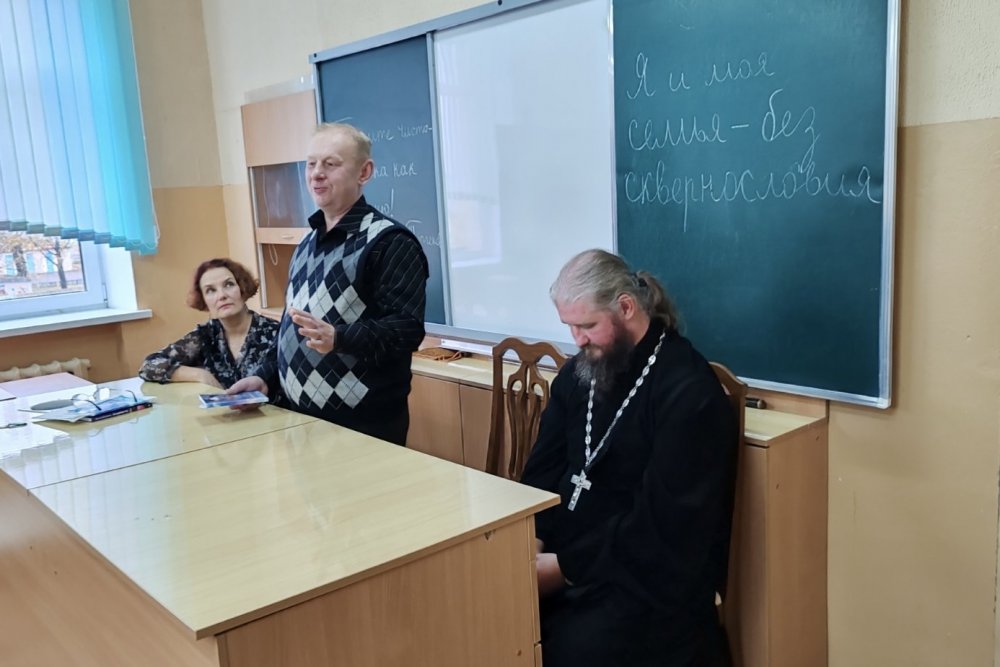 В рамках Недели родительской любви в ГУО «Средняя школа № 3 г. Горки» прошёл духовно-просветительский час «Я и моя семья – без сквернословия» с участием благочинного Горецкого округа Могилёвской епархии, настоятеля храма в честь иконы Божией Матери «Спорительница хлебов» иерея Никиты Хроменкова, члена Союза писателей Беларуси Натальи Никончук и члена народного литературного коллектива «Роднае слова», поэта Александра Веденеева.